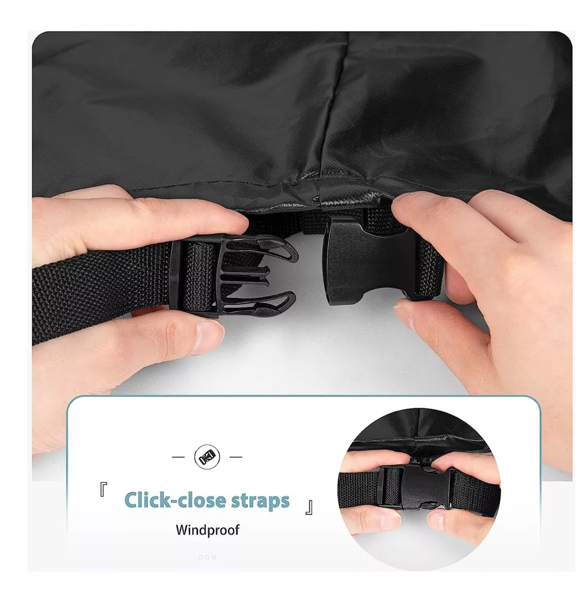 [Mejor seguridad] Se añaden 2 correas de cierre de clic en la parte inferior para asegurar la cubierta en su lugar incluso en vientos fuertes